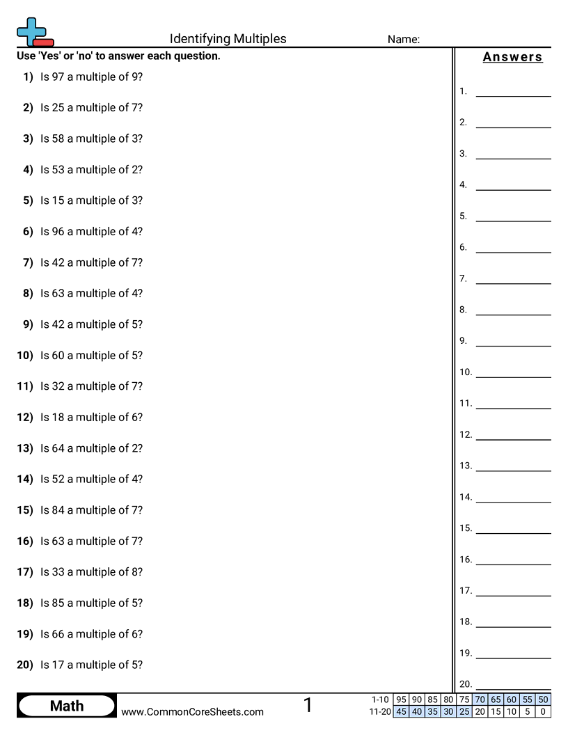 Identifying Multiples Worksheet Download