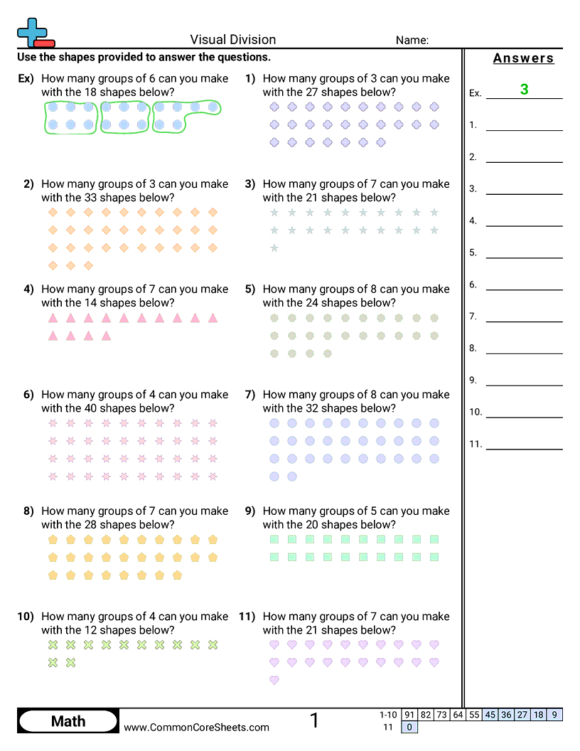 Each worksheet has 11 problems identifying the number of groups you can create.